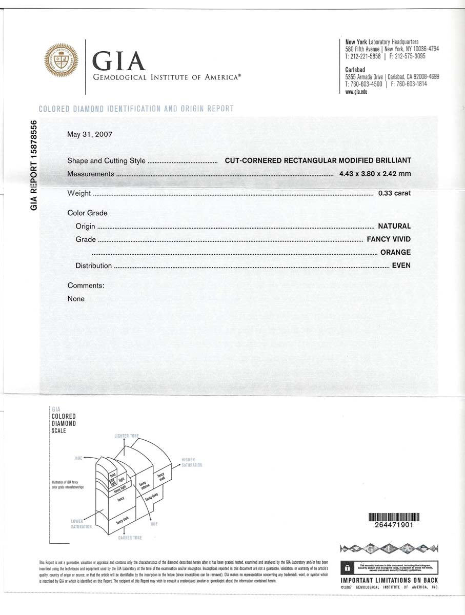 0.33ct Radiant, Fancy Vivid Orange Diamond - GIA