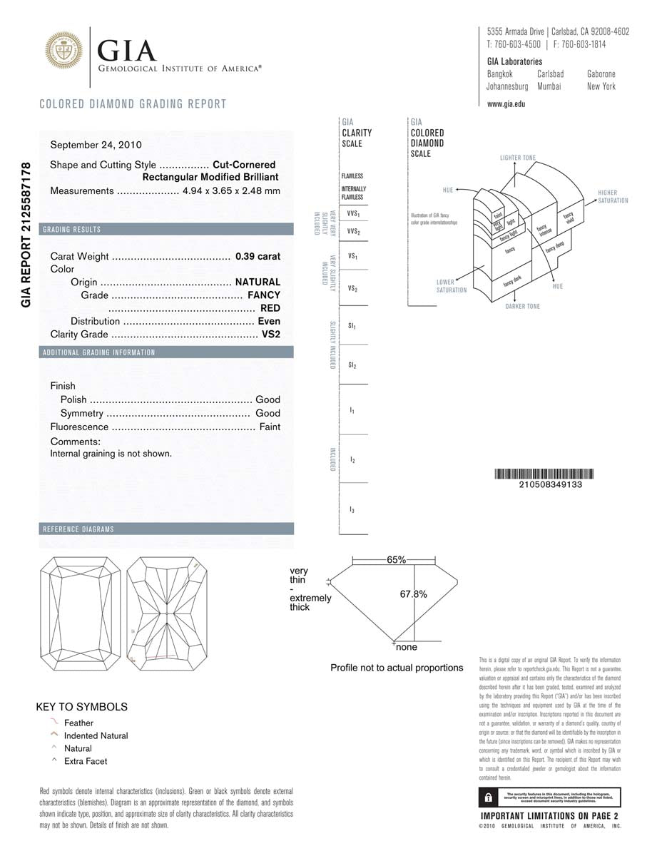0.39ct Radiant, Fancy Red Diamond, VS2 - GIA
