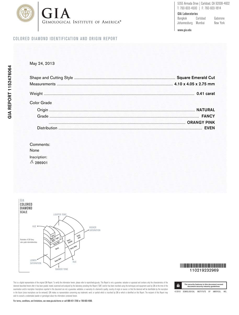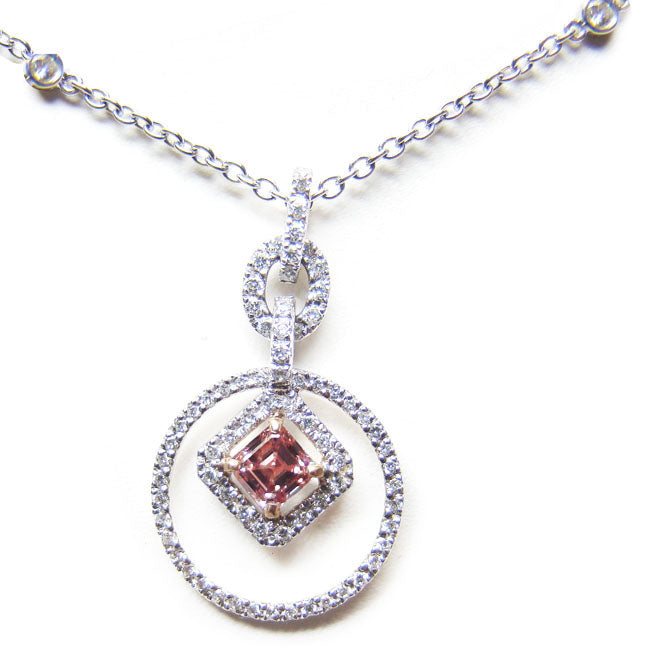 0.41ct Emerald Cut, Fancy Orangy Pink Diamond Necklace (Argyle) - GIA