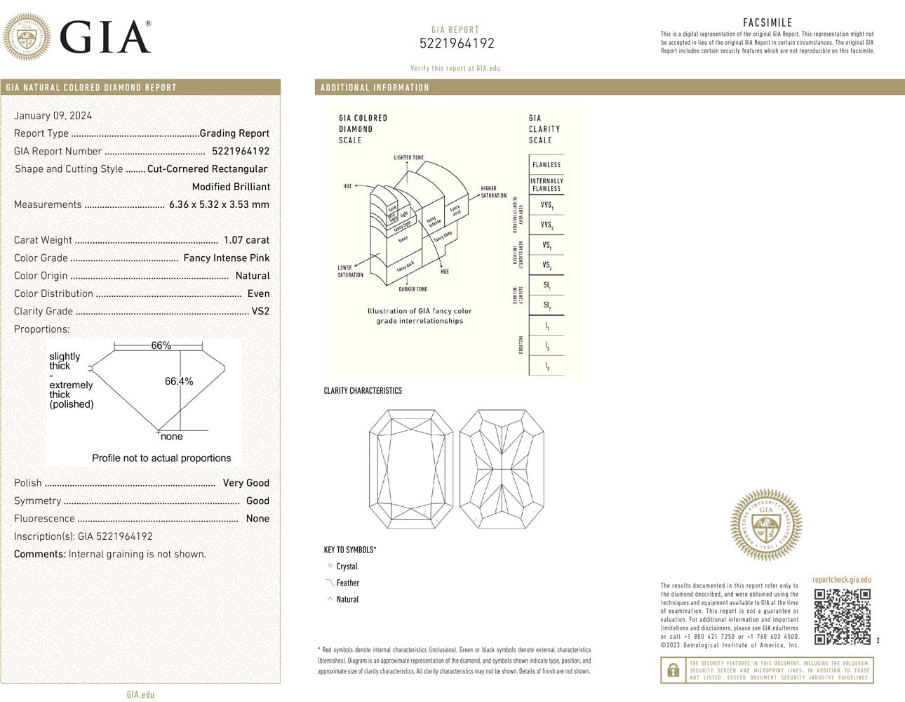 1.07ct Radiant, Fancy Intense Pink Diamond, VS2 - GIA