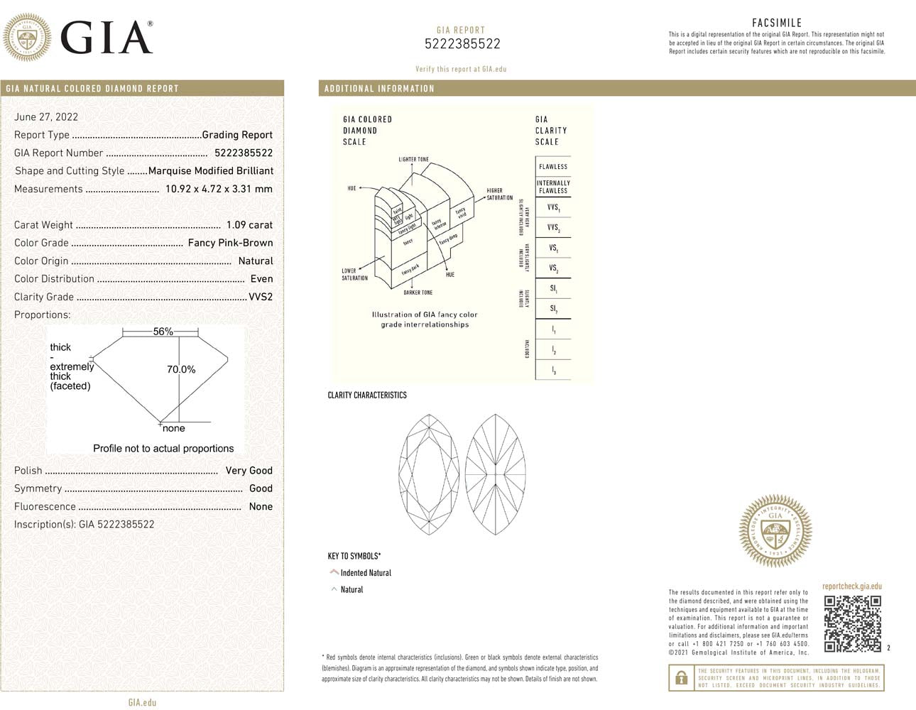 1.09ct Marquise, Fancy Pink Brown Diamond, VVS2 - GIA