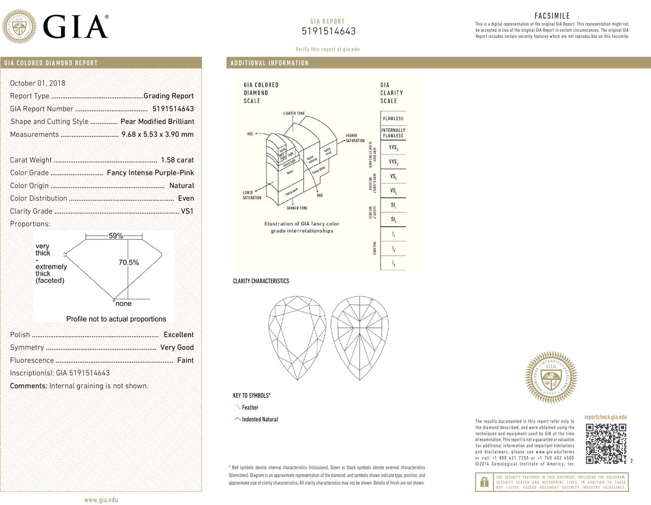 This exceptional 1.58 carat pear shape diamond showcases a rare Fancy Intense Purple Pink hue, combining a vibrant bubble-gum pink color with remarkable VS1 clarity - GIA certified. A truly sweet and highly desirable color tone in pink with great intensity and outstanding cutting, resulting in even color dispersion throughout making it an exquisite choice for collectors and connoisseurs seeking a standout gemstone with both brilliance and rarity.