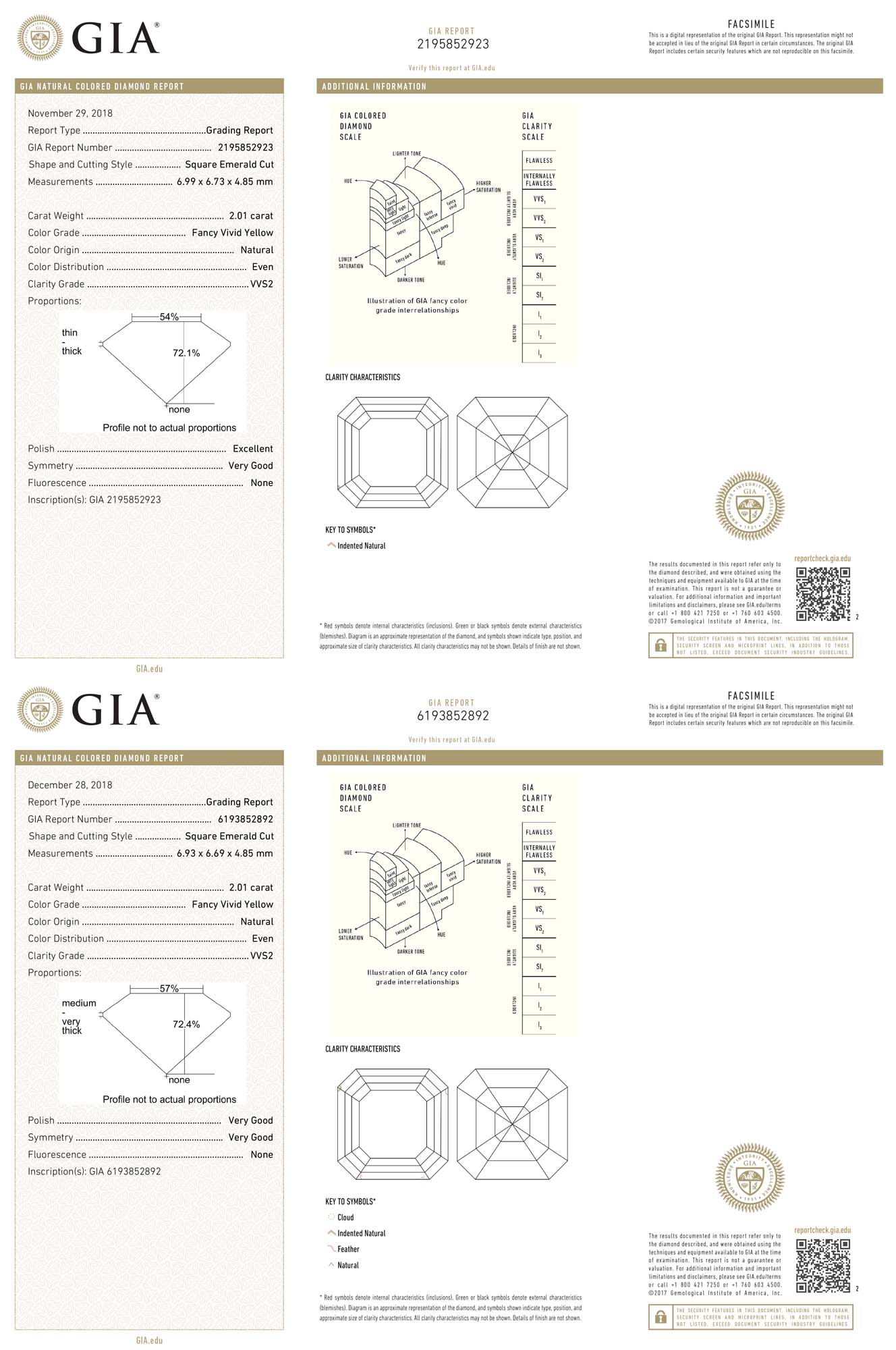 4.02ct Emerald Cut, Fancy Vivid Yellow Diamond (Zimmi, Pair), VVS2 - GIA